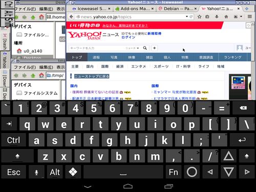 以前はAndroidでLinuxを動かす場合にはrootを取った状態で、「Complete Linux Installer」などを使ってLinuxディストリビューションをインストールしなくてはいけませんでした。 今はrootを取らなくてもAndroidでDebianを動かすことができるのですね。 Debia…
